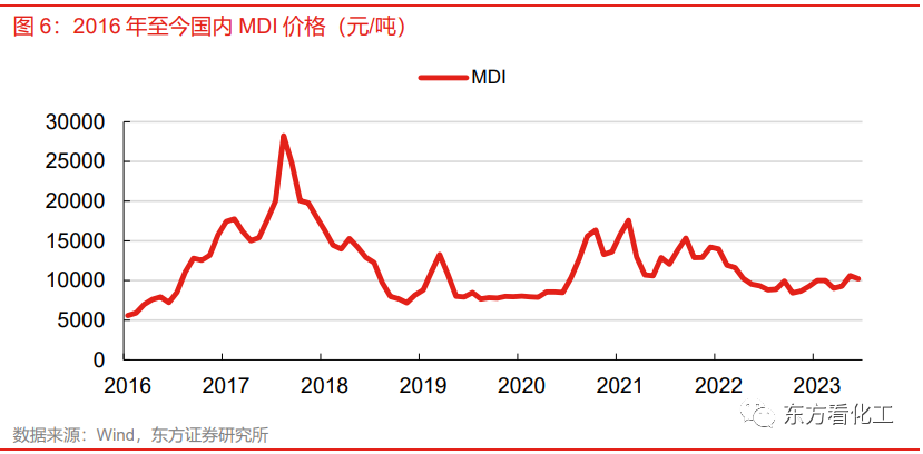 这一问题并不只在科思创一家企业上发生,实际上聚氨酯行业其他几家企业的情况都类似。虽然产品壁垒很高,但是多年来并没有得到良好的回报,导致业内企业对于扩产也都意兴阑珊。2020年以后MDI行业绝大部分扩产都来自于万华化学。