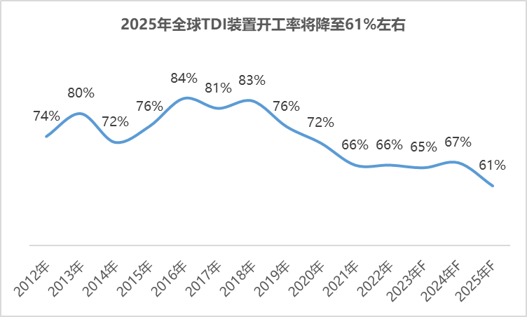 我们认为,未来随着人口增速放缓,TDI下游行业增长将趋于缓和。按照历史增速推测,2025年全球TDI需求量预计217万吨,其中中国TDI需求量预计91万吨,而全球TDI产能富余量将增加到141万吨,国内TDI产能富余量将增加到94万吨,全球和中国的TDI产能都将出现供远大于求的局面。在此预期下,2025年全球TDI装置开工率将下降至61%左右,接近15年以来的最低水平,历史市场参考价格长期徘徊在11500-13500元/吨,低开工率导致的高运营成本加之较低的产品价格,不少厂家出现了运营艰难的情况。