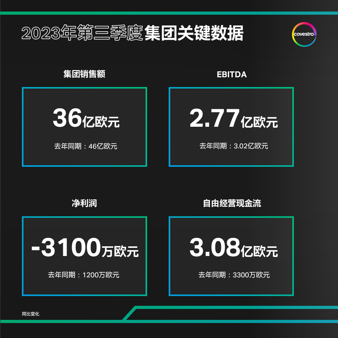 2023年第三季度继续受市场挑战影响,所有区域的需求均持续低迷,但科思创高度聚焦效率达成EBITDA目标。