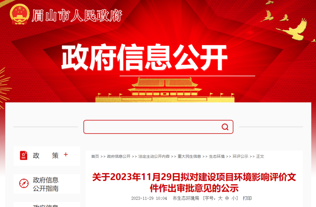 2023年11月29日,眉山市生态环境局拟对四川万陆实业有限公司年产2万吨PVDF一体化项目环境影响评价文件作出批复决定并予以公示。