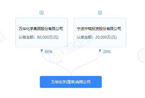 2022年1月17日,万华化学(蓬莱)有限公司正式成立,注册地位于山东省烟台市蓬莱区北沟镇峰台山路5号,注册资本10亿元,由万华化学、宁波中韬共同持股,万华化学占股80%。