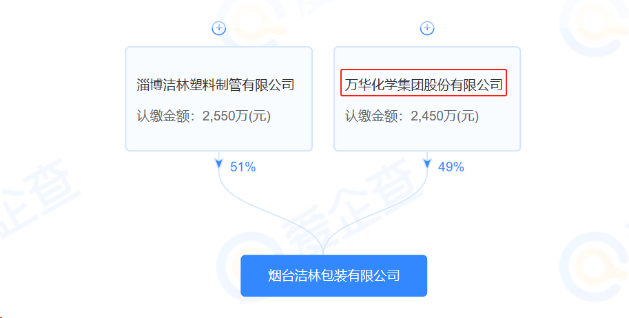 据爱企查消息,1月11日,烟台洁林包装有限公司成立,该公司是由万华化学与淄博洁林塑料制管有限公司共同持股。