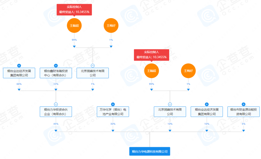 据悉,力华电源成立于2023年03月09日,注册资金2亿元,由万华化学(电池)、烟台业达经发集团、北京揽峰技术有限公司、烟台市财金源动能投资有限公司等合资成立,其中万华化学(电池)直接占股30%。