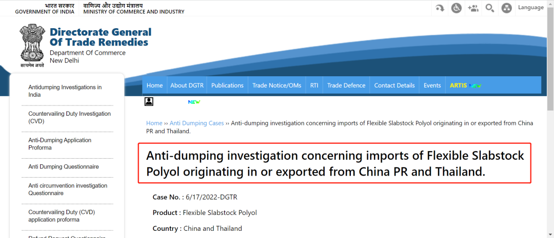 印度商工部曾于2023年3月29日发布公告称,应印度国内聚醚多元醇生产商默纳利石化(Manali Petrochemicals Ltd)代表行业提交的申请,对原产于或进口自中国与泰国的分子量为3000-4000的聚醚多元醇正式启动反倾销调查。