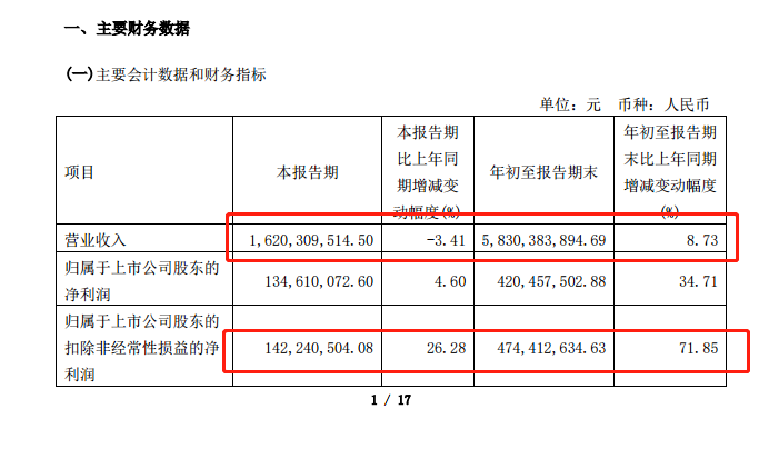 10月26日,上海家化发布第三季度财报。报告显示,公司前三季度实现营收58.3亿元,同比增长8.7%;实现净利润4.2亿元,同比上升35%;扣非净利润4.74亿元,同比增长72%,经营性现金流9.8亿元,同比提升59%。
