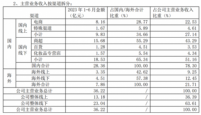 从渠道维度看,上海家化2023年上半年在线上和线下渠道均有不同的突破。