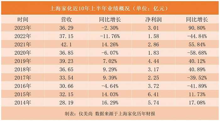 值得一提的是,营收方面,上海家化今年上半年创下2018年以来新低,而净利润则创下2020年以来的最高水平,增幅创十年新高。