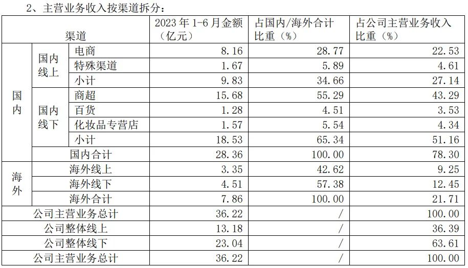 不过上海家化表示,公司海外业务上半年承压,收入同比下降12.28%至7.86 亿元。按渠道国内线上销售9.83亿元,渗透率34.66%,较上年同期8.84亿元和31.39%双双提高;国内线下销售18.53亿元较2022年同期19.32亿元下滑约4%。国际业务线上销售期内录得3.35亿元,渗透率42.62%,低于上年同期3.60亿元和40.20%。