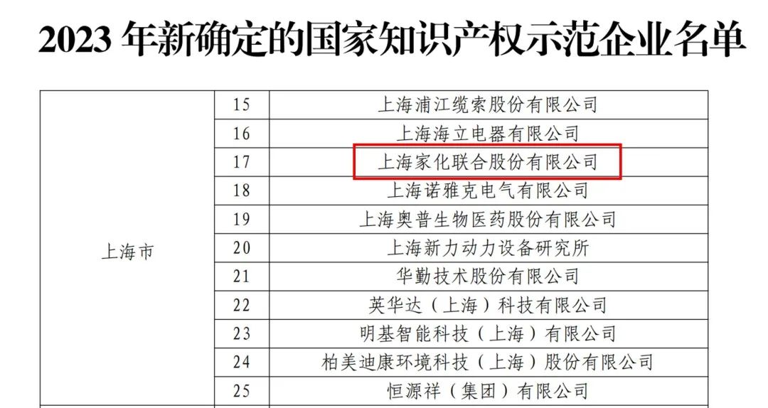 近日,国家知识产权局印发《关于确定2023年新一批及通过复核的国家知识产权示范企业和优势企业的通知》,确定全国750家企业成为新一批国家知识产权示范企业。上海家化联合股份有限公司凭借行业内领先的研发创新实力、完备的知识产权管理体系,以及突出的知识产权管理水平,成功入选“国家知识产权示范企业”。