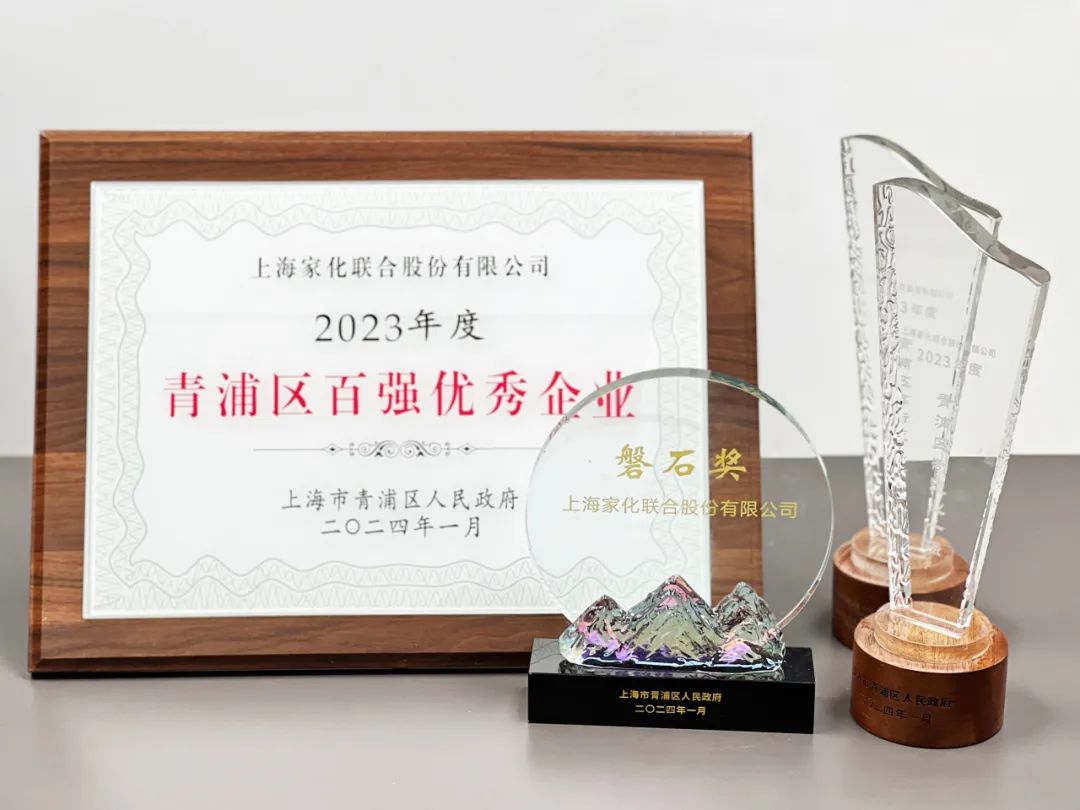 日前,上海家化受邀出席了2024年青浦区百强企业和青峰优秀人才及团队表彰会。公司荣获“2023年度青浦区百强优秀企业”、“2023青浦区制造业十强”、“2023年度突出贡献企业(磐石奖)”、“2023年度青浦区高新技术十强”等一系列荣誉称号。青浦区区委书记徐建,区委副书记、区长杨小菁,区人大常委会主任朱明福,区政协主席曹卫东等区四套班子领导出席并为企业颁发奖杯奖牌。