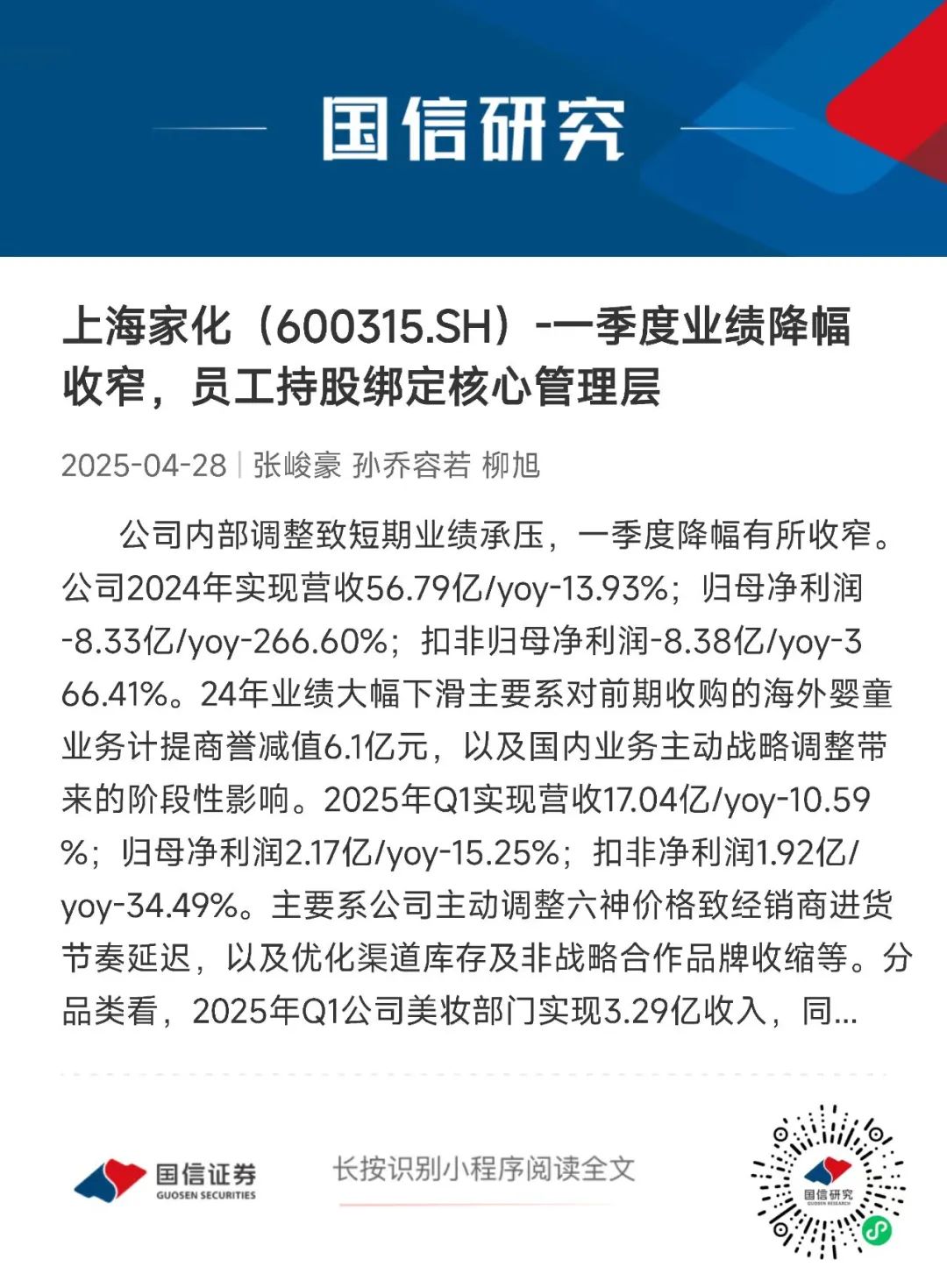 公司2024年实现营收56.79亿/yoy-13.93%;归母净利润-8.33亿/yoy-266.60%;扣非归母净利润-8.38亿/yoy-366.41%。24年业绩大幅下滑主要系对前期收购的海外婴童业务计提商誉减值6.1亿元,以及国内业务主动战略调整带来的阶段性影响。2025年Q1实现营收17.04亿/yoy-10.59%;归母净利润2.17亿/yoy-15.25%;扣非净利润1.92亿/yoy-34.49%。主要系公司主动调整六神价格致经销商进货节奏延迟,以及优化渠道库存及非战略合作品牌收缩等。