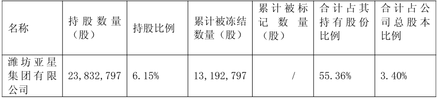 目前, 亚星化学 的控股股东是 潍坊市城市建设发展投资集团有限公司 ,实际控制人是山东省潍坊市国资委。而亚星集团还持有2383.2797万股 亚星化学 股票,占上市公司总股本的比例为6.15%,其中1319.2797万股被冻结,即为此次司法拍卖的股票。