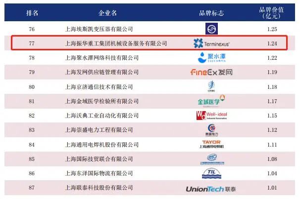 会上,上海企业文化与品牌研究所TBB中国品牌价值榜课题组发布了2023TBB中国品牌价值榜,其中,振华重工位列“TBB上海制造品牌价值榜”第17位,Terminexus位列“SFEO上海生产性服务业品牌价值榜”第77位。