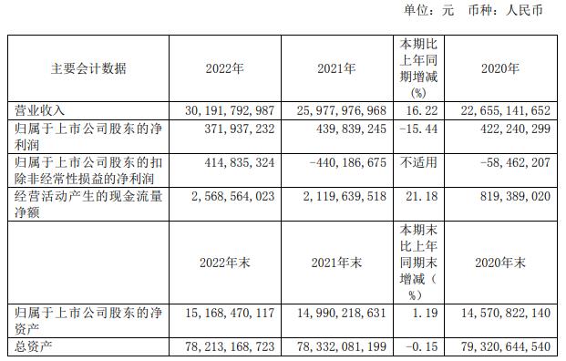 振华重工2022年年度报告显示,2022年,振华重工实现营业收入301.92亿元,同比增长16.22%;归属于上市公司股东的净利润3.72亿元,同比下滑15.44%;归属于上市公司股东的扣除非经常性损益的净利润4.15亿元;经营活动产生的现金流量净额25.69亿元,同比增长21.18%。