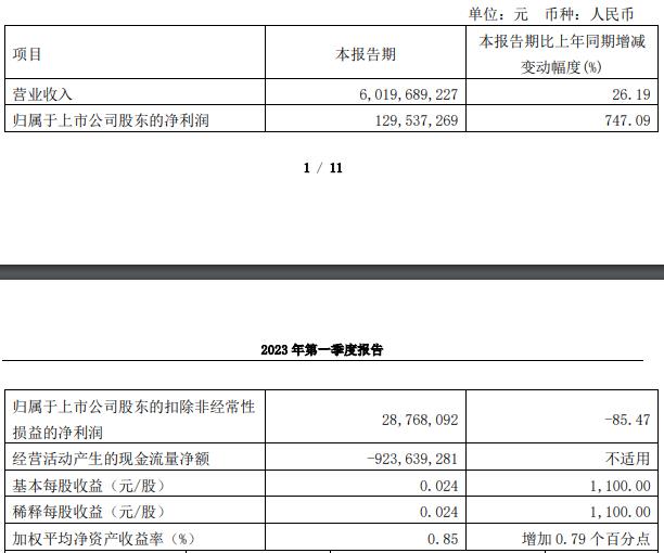 振华重工2023年第一季度报告显示,2023年一季度,振华重工实现营业收入60.20亿元,同比增长26.19%;归属于上市公司股东的净利润1.30亿元,同比增长747.09%;归属于上市公司股东的扣除非经常性损益的净利润2876.81万元,同比下滑85.47%;经营活动产生的现金流量净额-9.24亿元。