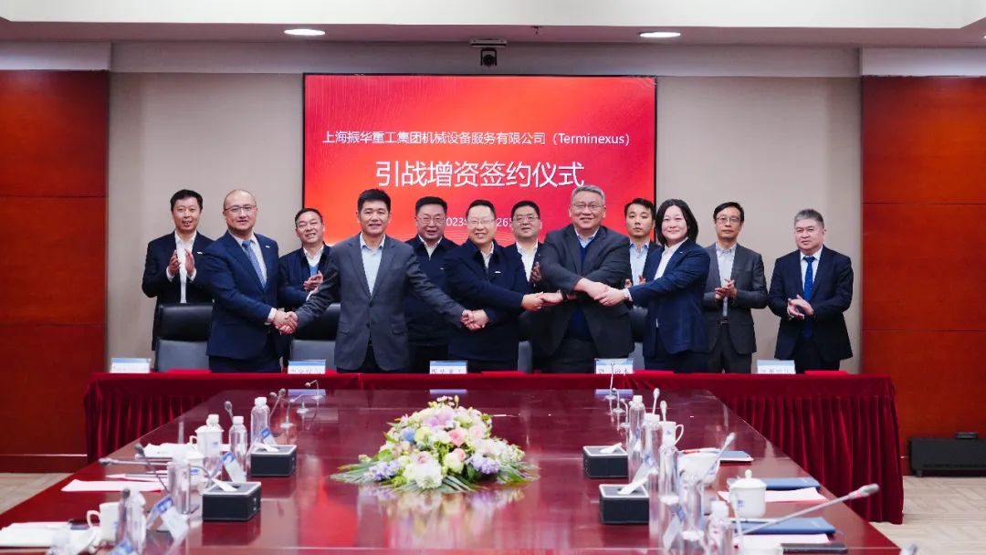 12月26日,上海振华重工集团机械设备服务有限公司(Terminexus,以下简称“T公司”)引战增资签约仪式在公司总部举行。中交集团党委常委、副总经理、公司董事长刘成云,中交集团资本运营部总经理、中交资本党委书记、总经理徐汉洲,公司党委书记、副董事长由瑞凯,党委副书记、总裁欧辉生,党委常委、执行总裁、财务总监朱晓怀,党委副书记、工会主席王成,普洛斯中国首席战略官、隐山资本董事长东方浩,中交鼎信股权投资管理有限公司董事长杨文兵,中信证券股份有限公司投行基础设施与现代服务行业组联席负责人蒋昱辰等出席仪式。