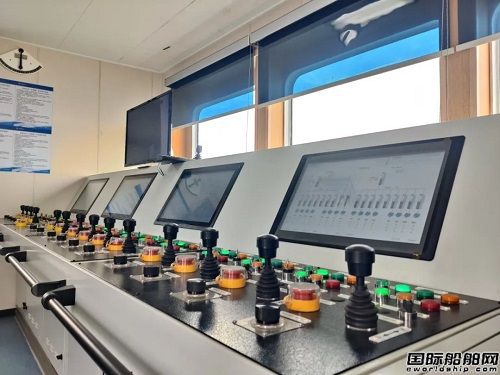 在本次施工作业中,风电安装平台上驳环节先由定位绞车和系泊绞车配合稳定半潜驳船,半潜下水环节再由定位绞车、锚链机配合稳船,系泊绞车和移货绞车辅助风电安装平台向后移出,工作人员全程在驾驶室中央集控台集成操作。四类锚绞车的高效协同配合为本次施工作业提供了重要装备支撑,展现了公司在锚绞车装备集成控制领域深厚的技术和团队实力。