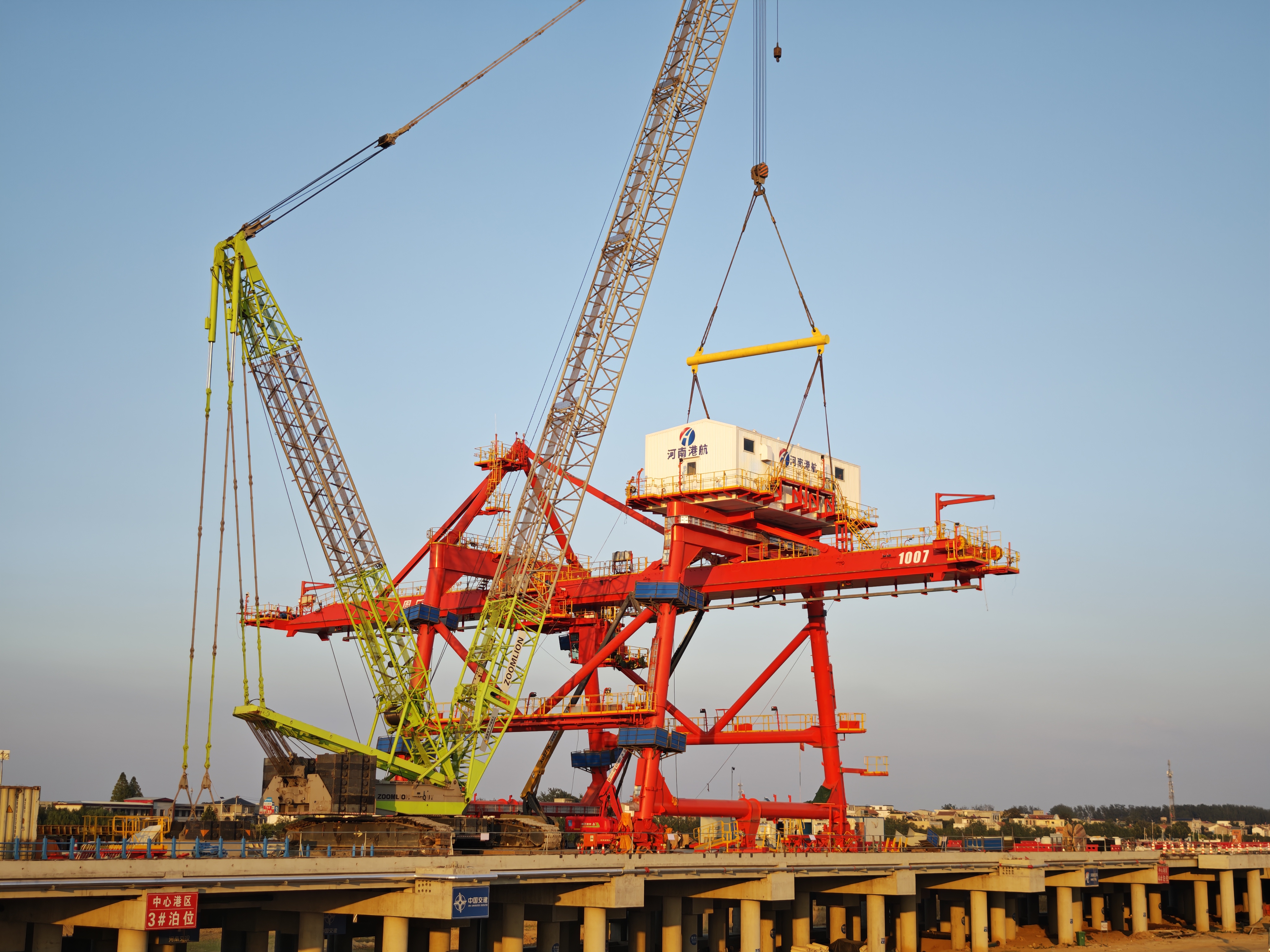 振华重工为该港设计制造的设备共有9台,包括3台自动化岸桥和6台自动化双悬臂轨道吊。其自动化岸桥为低碳装配式内河岸桥,采用了全管门框和单箱梁的复合结构体系,使得岸桥兼备轻量化和低风阻的“双重”特性,从而降低设备运行阻力和码头负载,助力港口绿色低碳运营。这台自动化低碳装配式内河岸桥是河南省首台码头“智慧装卸工”,也是目前省内智慧化程度最高的港口码头装卸设备,整体配置国内领先、世界一流。设备投运后,将与无人驾驶集装箱卡车等智慧设备联动,实现港口集装箱装卸、水平运输及堆场作业等全流程自动化。