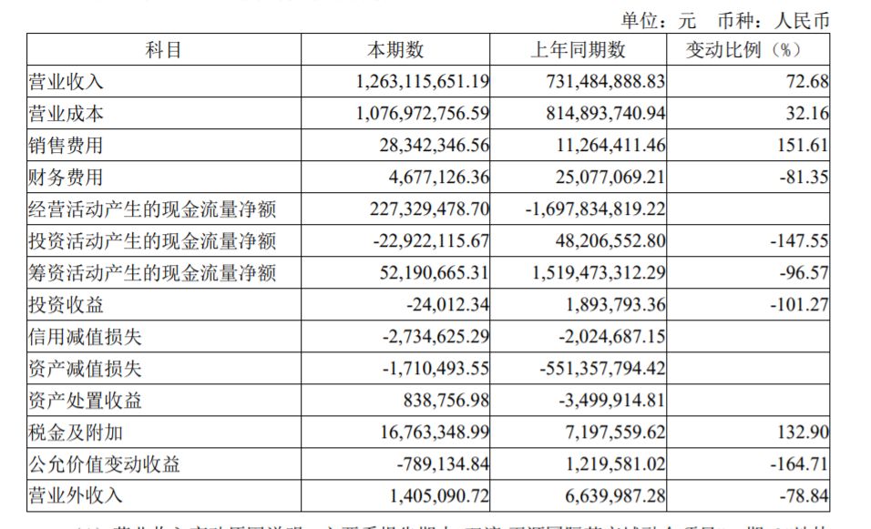 报告期内,正源股份实现营业收入12.63亿元,同比增长72.68%;归属上市公司股东的净利润4360.98万元,实现扭亏为盈。