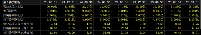 2024年,瀚蓝环境实现营收118.86亿元,同比下滑5.22%;实现归母净利润16.64亿元,同比增长16.39%。今年一季度,瀚蓝环境延续降收增利,实现营业收入26.01亿元,同比下降4.24%;对应归母净利润4.2亿元,同比增长10.26%。
