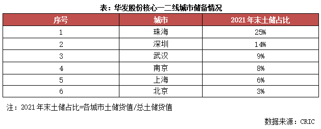珠海作为大本营,一直是企业城市投资布局的重中之重。在多年深耕战略下,珠海积累了丰厚的土地储备资源,截至2021年末,土储建面近500万平方米,约占企业总土储建面2成,显著高于其他城市储备规模,在企业战略地位突出。