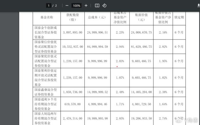 本周,华发股份去年10月定向增发发行的6.35亿股票迎来了首个解禁日。国泰基金作为参与华发股份定向增发的基金公司,共认购2478万股,是认购较多的基金公司之一。国泰基金在完成认购后,就将上述认购的股票,分配给九只股票基金。