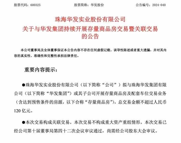 对于交易的目的和影响,华发股份在公告中表示,本次交易是为积极响应党的二十届三中全会关于“加快建立租购并举的住房制度,加快构建房地产发展新模式”的工作部署,助力珠海市加快建立租购并举的住房制度,完善“市场+保障”住房供应体系,同时盘活公司存量资产,进一步促进销售,稳定现金流。