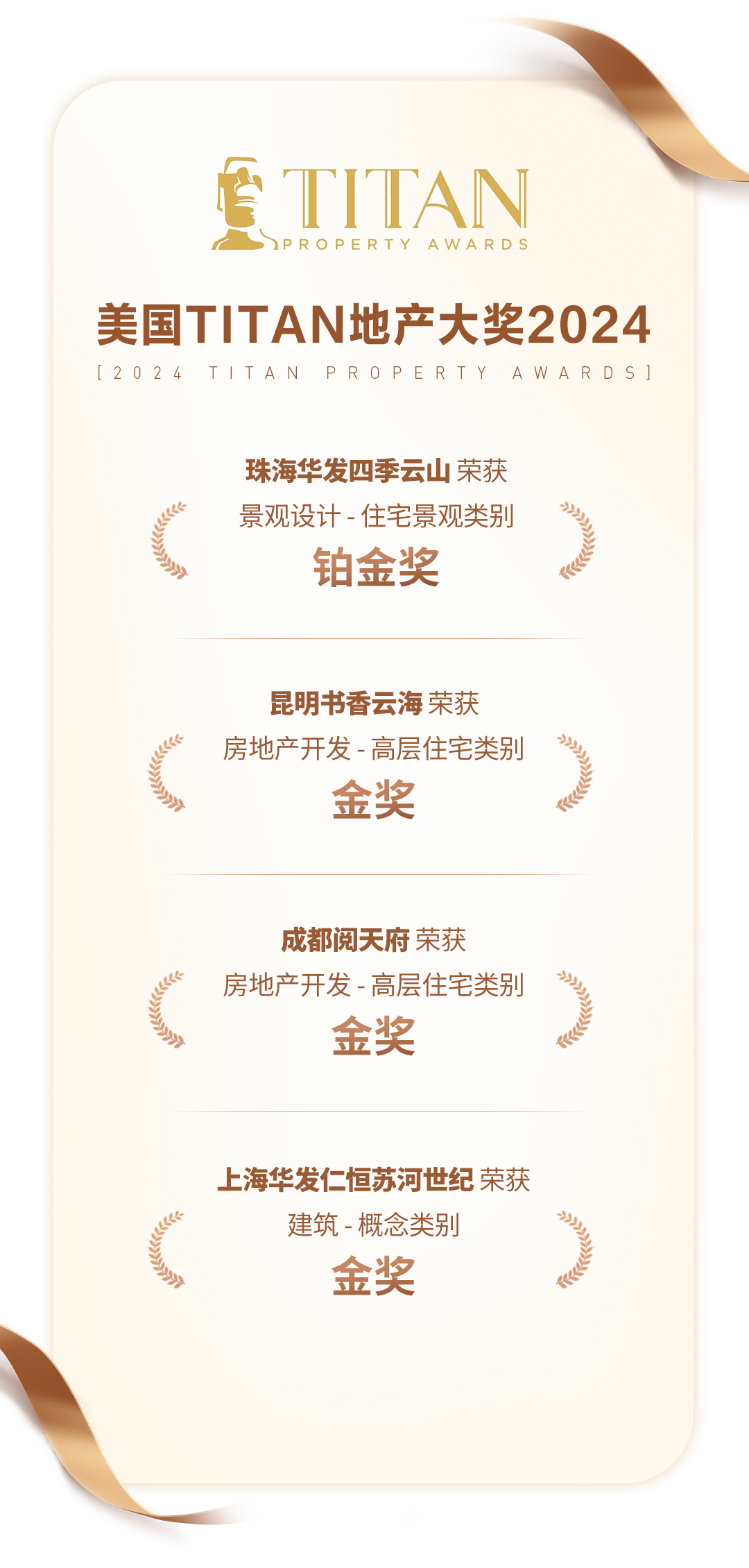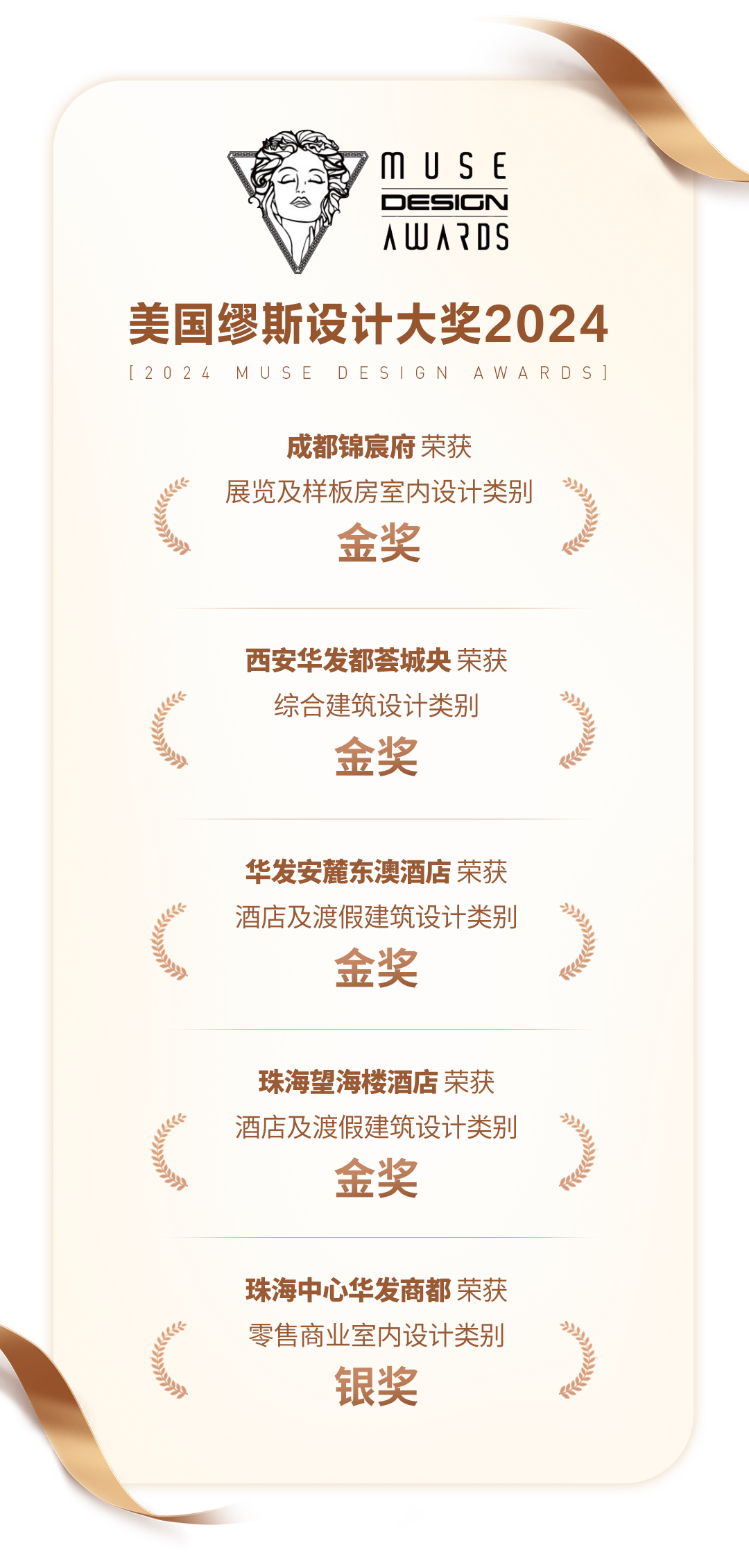 荣誉,是实力的见证!近日,华发股份凭借过人的硬实力,多个项目接连在美国缪斯设计大奖、美国 TITAN地产大奖、日本IDPA AWARD 国际先锋设计大奖、第10届CREDAWARD地建师设计大奖等国际大奖中斩获殊荣。