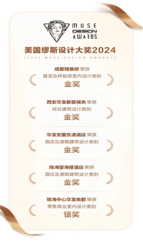 近日,华发股份凭借过人的硬实力,多个项目接连在美国缪斯设计大奖、美国TITAN地产大奖、日本IDPA AWARD国际设计大奖、第10届CREDAWARD地建师设计大奖等国际大奖中斩获殊荣,获奖项目主要涵盖室内、建筑以及景观几个方面,再次彰显华发产品的“全能”。
