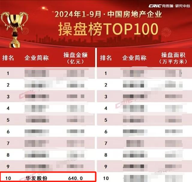 扎实过硬的产品力,直接转化为强劲的销售力。据克而瑞数据显示,2024年1-9月,华发股份以640亿元的操盘金额位列中国房地产企业操盘榜第10位,同比上升3位。销售业绩持续稳居行业TOP10,不仅体现了华发领导班子的前瞻战略部署,更加彰显了公司强劲的增长潜力。