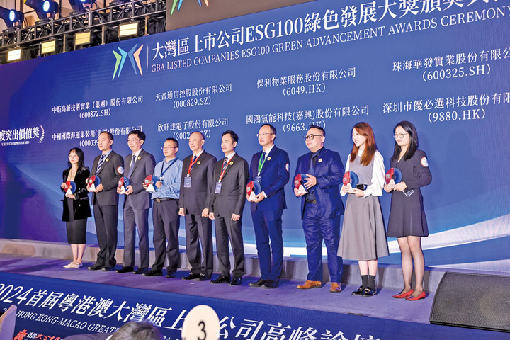 公司代表上台领奖「大湾区上市公司ESG100绿色发展大奖-突出价值奖」
