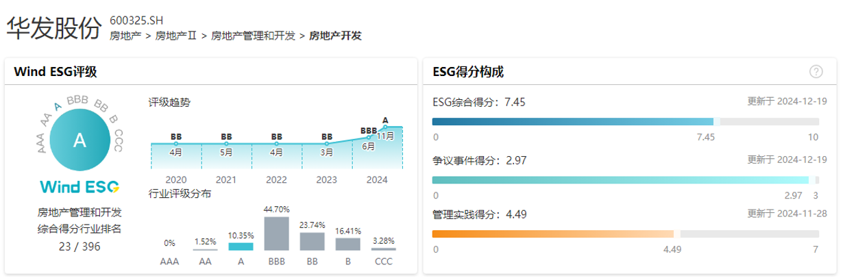 图1WIND ESG评级平台界面–华发股份于2024年12月19日评级更新