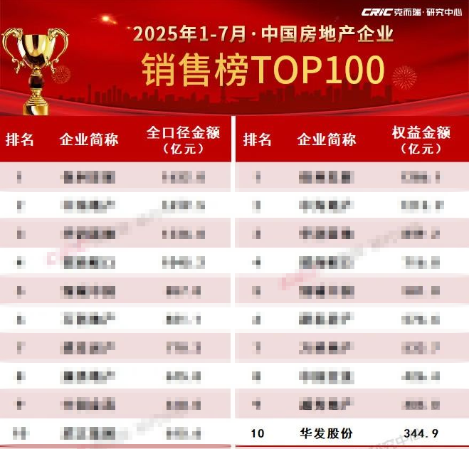 2025年1-7月,华发股份销售金额和行业排名持续保持稳定。7月销售榜显示,华发股份权益销售金额为344.9亿元,位居行业第10名。而截至目前,华发股份权益销售金额更是已连续7个月稳居行业前十,稳稳扎根行业第一梯队。