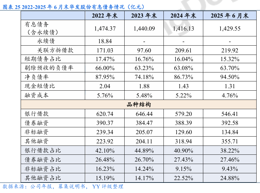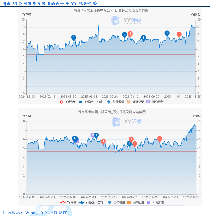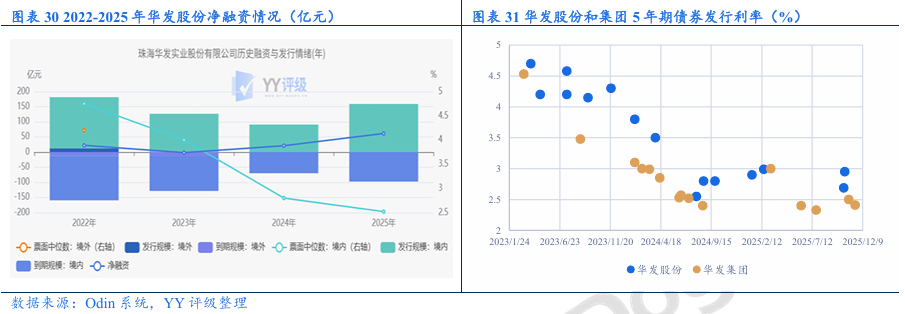 债券市场:公开市场再融资较通畅,2024和2025年净融资21亿元和62亿元,但发行利率小幅抬升。考虑到公司再融资能力较强,整体信用风险仍可控;二级市场方面,受到万科展期、公司和华发集团基本面弱化的影响,公司近期YY隐含明显上升,关注估值波动风险。