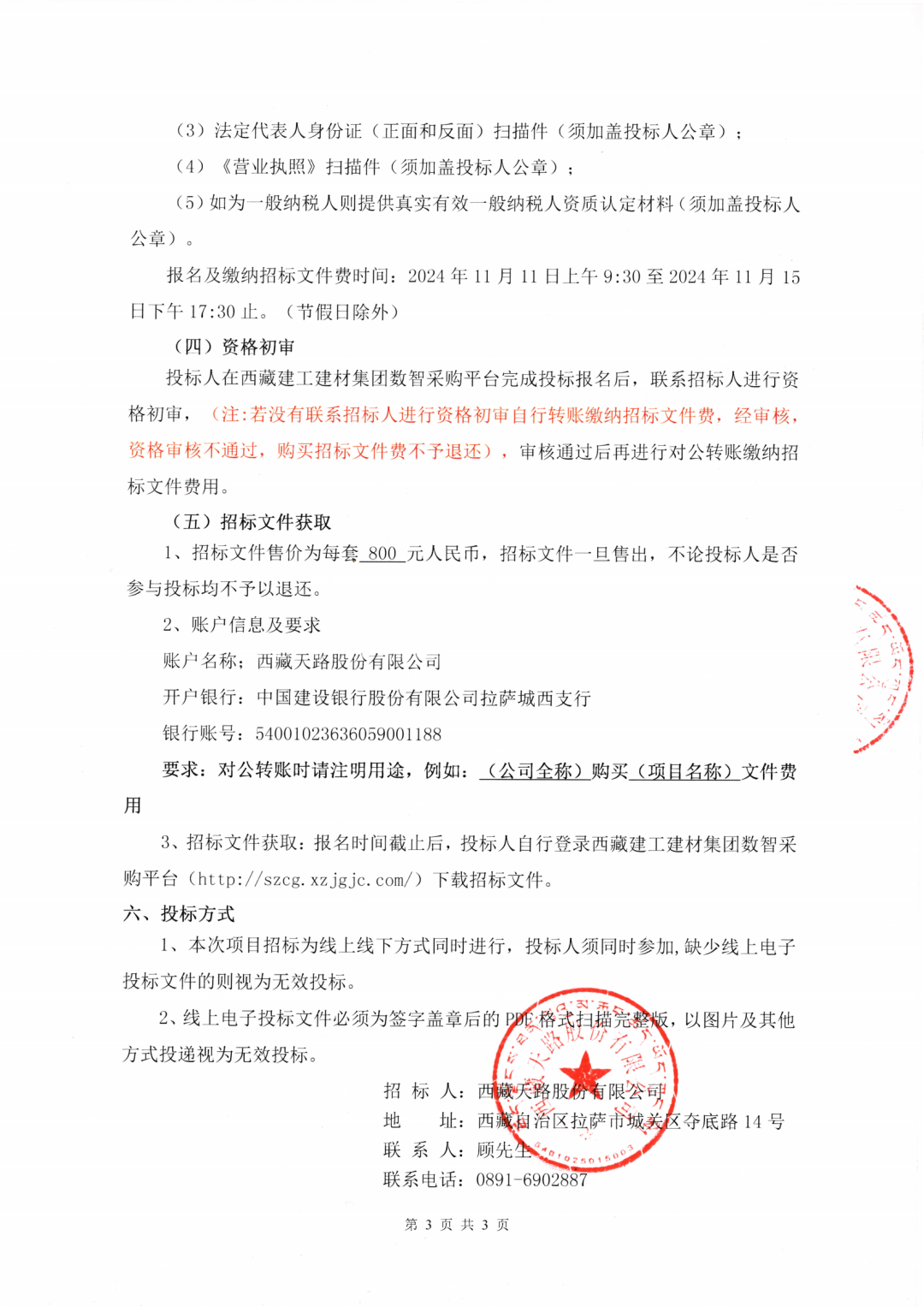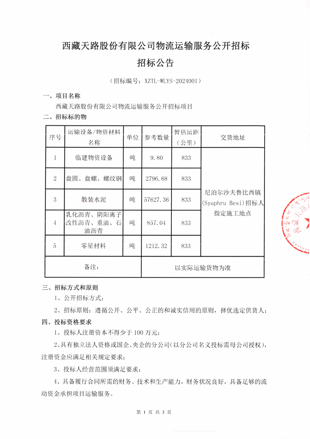 招标公告|西藏天路股份有限公司物流运输服务公开招标公告