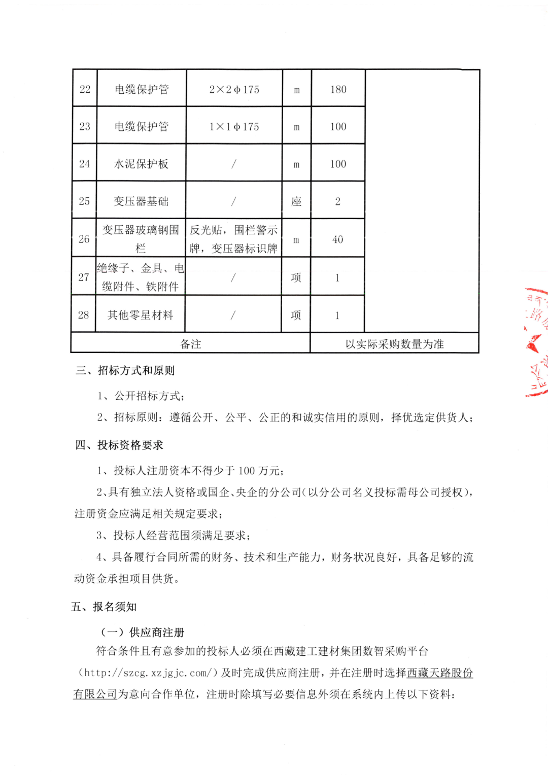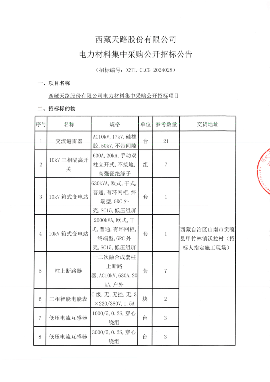 招标公告 | 西藏天路股份有限公司电力材料集中采购公开招标公告