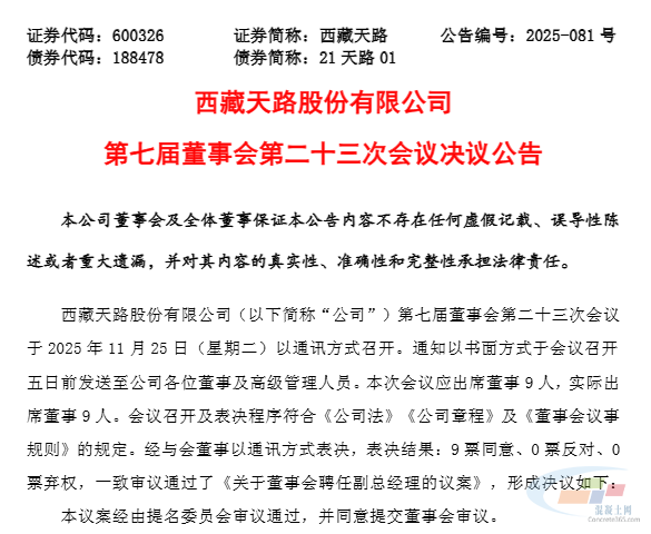 11月25日, 西藏天路 发布公告,近期收到公司董事、副总经理格桑罗布,副总经理吴成彬,副总经理兼总工程师次旦多杰的书面辞职报告。