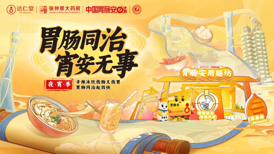 津药达仁堂集团胃肠安通过理解消费行为,来为他们解决痛点,携手实力连锁张仲景大药房、胃肠权威专家,成立胃肠同治研究院,共同发起“中国胃肠安计划”,致力于以“胃肠同治新理念,守护国民胃肠安”,并深入到消费者聚集的夜宵场,沉浸式科普胃肠同治理念,守护胃肠的新知识。