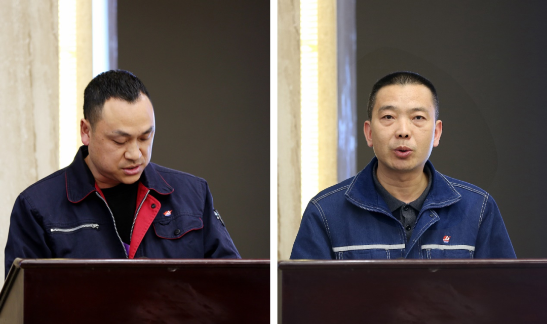 有色基地职工代表蒲杰、磷化工基地职工代表谢强结合自身工作经验和感受,分别就公司民主管理、产业改革及“五小”活动情况在会上作了汇报发言。