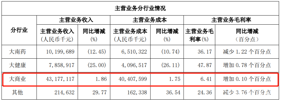 医药商业是个大体量、低利润率的行业。白云山的大商业板块毛利率常年维持在6%左右的水平,也就是说在2020年617亿的收入中,有431.8亿元基本上不赚钱。