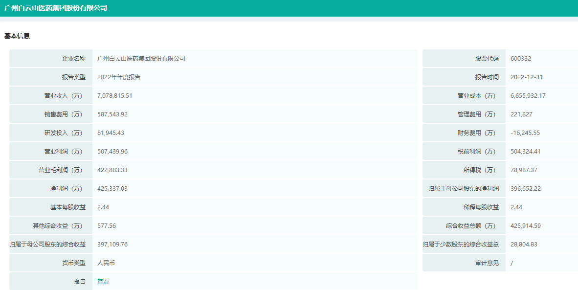 2022年受中药材涨价等因素影响,中药企业成本上升、利润下降。行业利润总体承压下,多家老牌头部中药企业凭借深厚的技术优势和品牌竞争力,业绩表现出色。其中,白云山、云南白药、华润三九、同仁堂、太极集团、以岭药业6家企业营收超百亿元,且均创历史新高。
