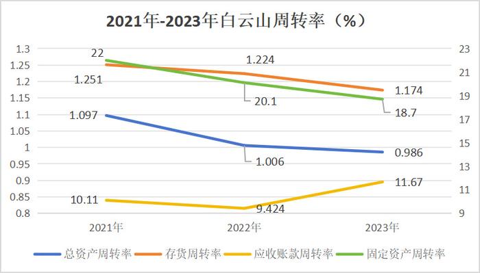 再来看看总资产周转率,公司的总资产周转率从2021年的1.097减少到了2023年的0.986。