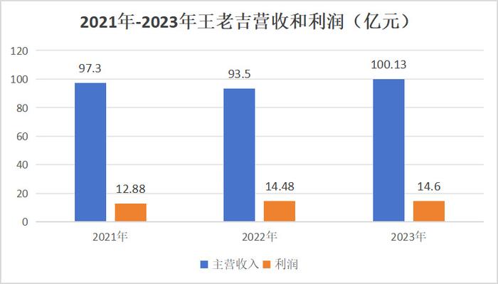 虽然凉茶市场规模增大,但是白云山主营产品王老吉却增收不增利,营收从2021年的97.3亿增长到了2023年的100.13亿,同比增速7.09%,在2023年净利润的同比增速只有0.83%。