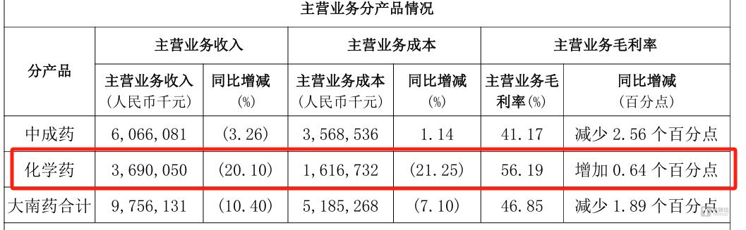 尽管总营收下降并不多,但公司的大南药、大健康业务两块现金奶牛业务的集体失速,还是对公司净利润表现造成巨大的压力。毕竟,该公司的两块业务毛利率连续多年维持在40%以上。