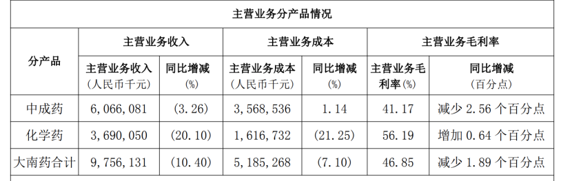 年报中可以发现,白云山的中西药板块都出现了不同程度的下滑,中药收入下滑了3.26%;化药收入下滑幅度高达20.10%,且毛利率均在下滑,意味着基本业务面受到了严重影响。