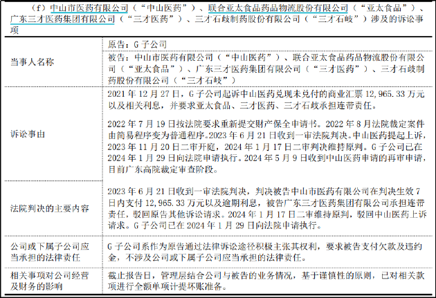 直至2024年,仍有部分纠纷处于审理或结案过程中。以涉案方为联合亚太食品药品物流股份有限公司、白云山子公司广州医药股份有限公司等的案件为例,裁判文书网显示,与广晟能源案类似,双方争议的焦点是广州医药股份有限公司是否与亚太公司之间存在真实交易关系而合法持有案涉票据。同时,文书中提到,相关交易票据流(包括发票)、资金流和物流不一致,具有明显的融资性贸易特征。