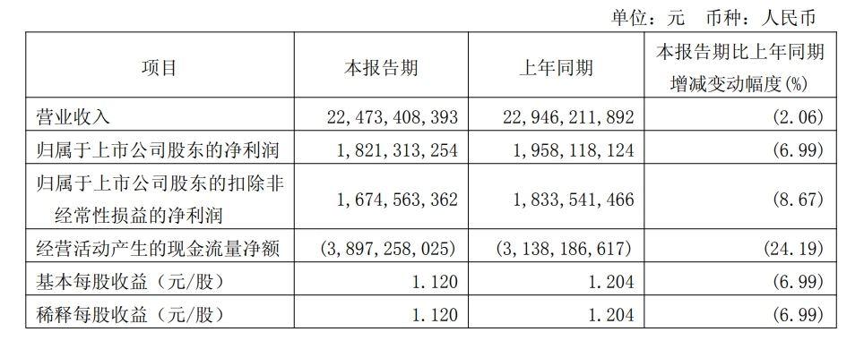 4月29日,广州白云山医药集团股份有限公司(600332.SH)发布2025年一季报,2025年第一季度营业收入为224.73亿元,同比下降2.06%;归母净利润为18.21亿元,同比下降6.99%;归母扣非净利润为16.75亿元,同比下降8.67%。