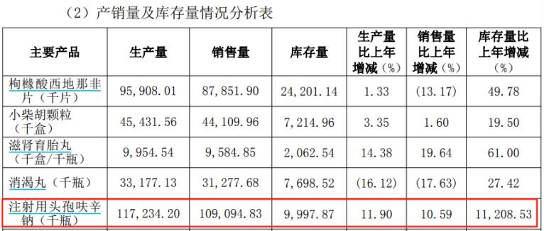 除以上问题外,公司还面临药品库存危机,阿莫西林系列营收暴跌36.65%;消渴丸营收下滑23.45%的同时库存增长27.42%;更令人胆战心惊的是注射用头孢呋辛钠库存量暴增11208.53%。