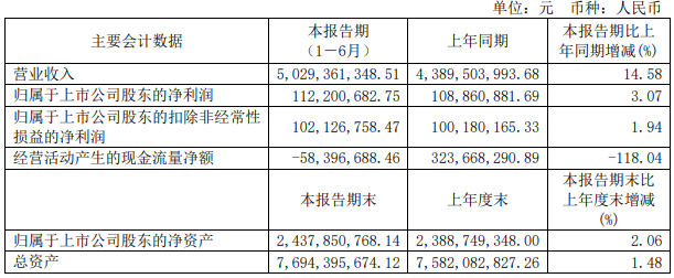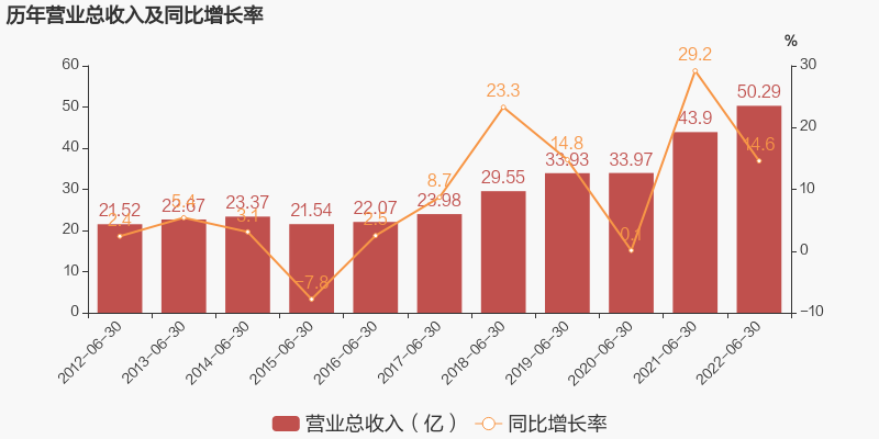 澳柯玛于2022年8月20日披露中报,公司2022上半年实现营业总收入50.29亿元,同比增长14.6%;实现归母净利润1.12亿元,同比增长3.1%。