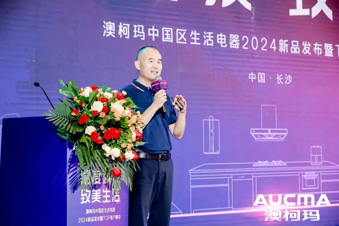 大会在美轮美奂的灯光秀中拉开帷幕。澳柯玛股份有限公司常务副总经理、中国区家用营销渠道总经理李建成进行了致辞。他表示,2023年是澳柯玛新一轮“三年倍增计划”开局之年,也是澳柯玛的品牌年、效益年和产品年。澳柯玛将以用户为中心大力提升创新力、品牌力、营销力、产品力,持续推进品牌升级、营销策略升级和文化升级各项措施,推动企业实现高质量发展。同时希望生活电器坚守主业地位,保持战略定力,持续加大研发投入力度,坚持“为用户创造价值”的理念,深耕温度科技,求新求变,为千家万户不断打造各类厨电、小家电精致产品,助力中国消费者追求更美好的生活。